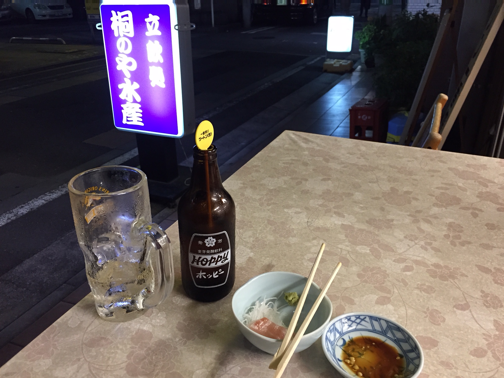 野毛小路を日ノ出町方向に歩いていった先に見えてくるは「桐のや水産」の看板。