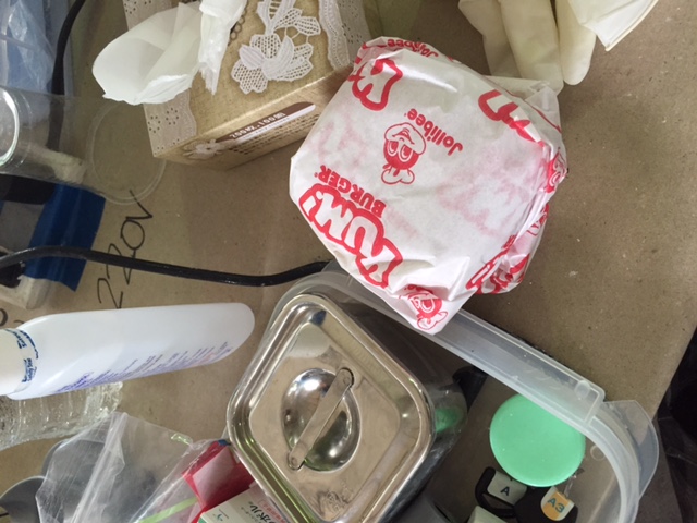 こちらは差し入れでいただいたジョリビーのハンバーガー。フィリピンでは有名なファーストフードです。私が治療している最中に、アシストについてくれた現地の先生から「お前も食うか?」と差し出された時は少し焦りました。笑